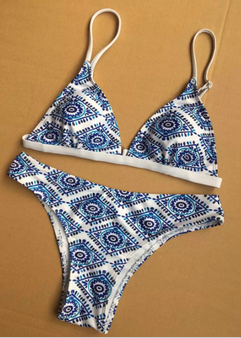 Fashion Women's Blue White Floral Bikini Swimming Set