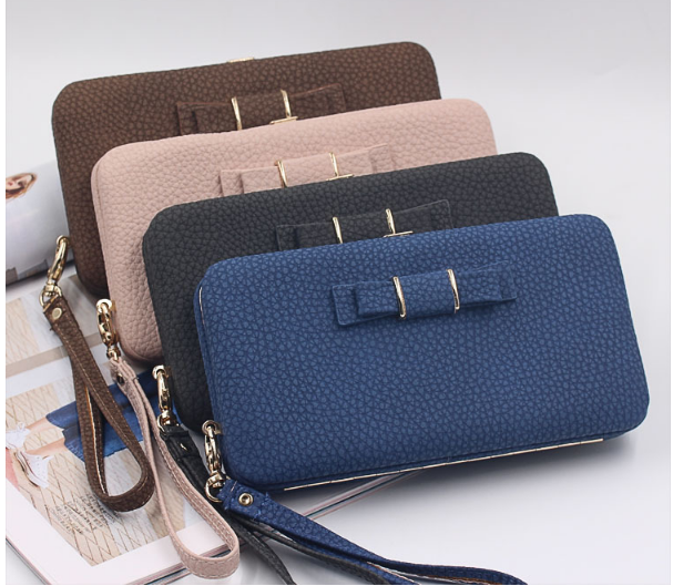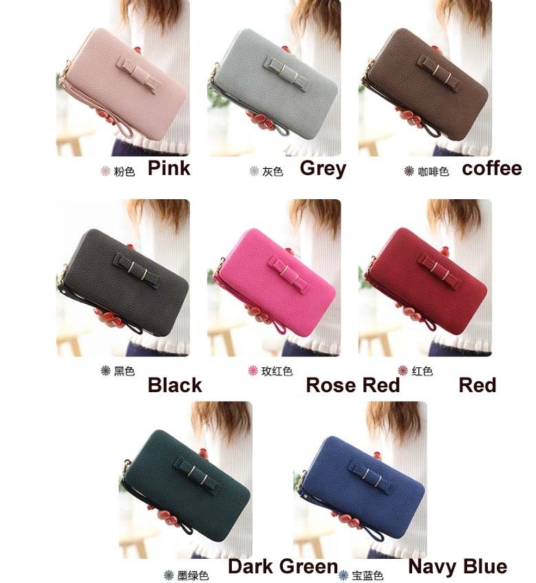 High Quality Bowknot design Women Long Wallet Card Holder Cellphone Pocket Money Bag Clutch